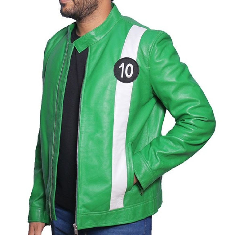Experience This Men’s Green Ben Ten Cosplay Jacket Genuine Leather Jacket